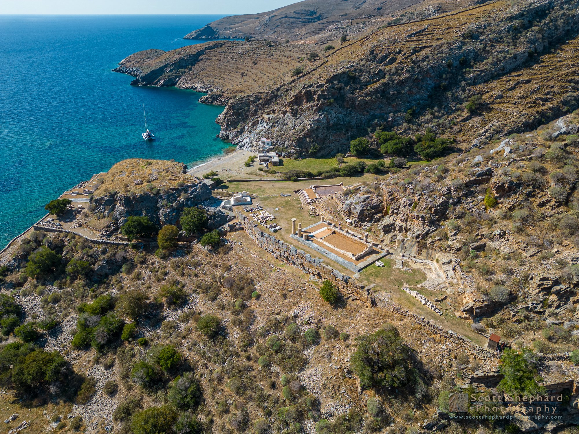 But it is a spectacular place, largely because of the setting at the base of a rocky and quickly rising slope but also because we had this archaeological site all to ourselves. Easiest access is by boat, though we had to get in the water to make it to shore due to rocks near the beach. You can hike in from above but I’ve read that the path is steep and rocky. If you are part goat, it would be easy.